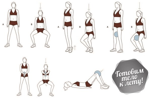 - Упражнения, которые выполняются стоя (приседания и выпады)