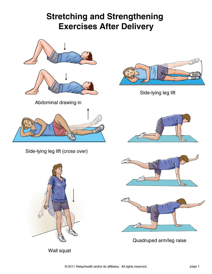 Почему это полезно: это упражнение настолько легкое, что его можно выполнять через час после родов.Это помогает расслабить мышцы и запускает процесс укрепления и тонуса пресса и живота.