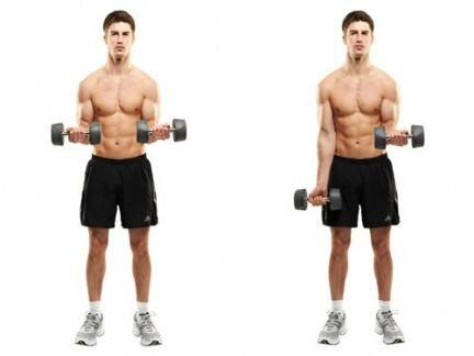 - Попеременное сгибание рук с гантелями | 2 рабочих комплекта
