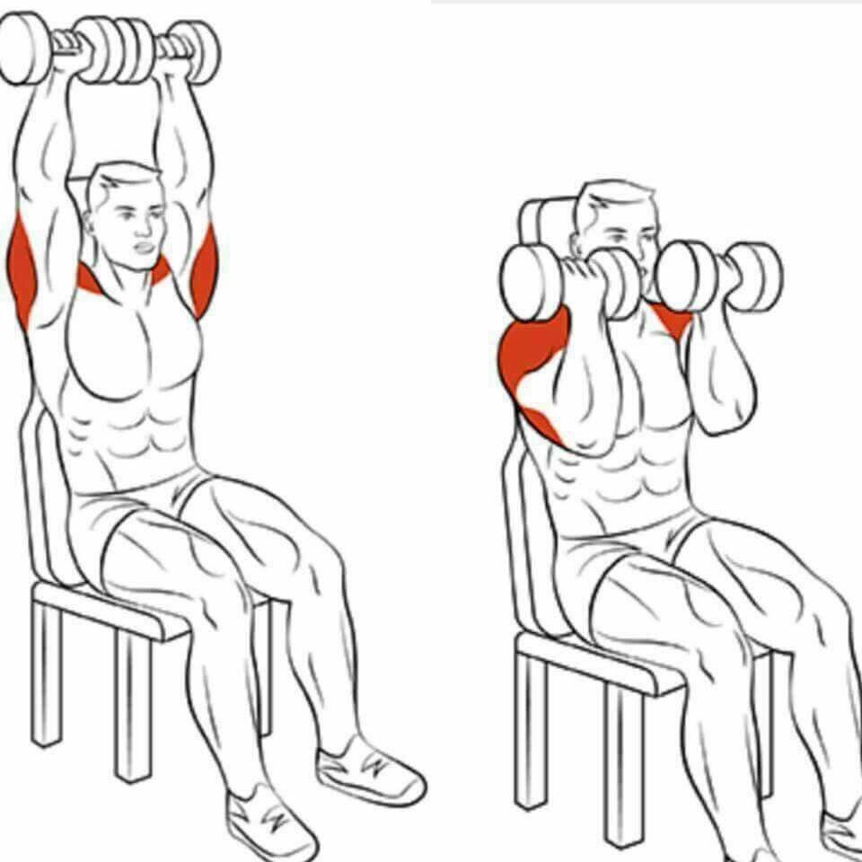 Жим Арнольда — это вариант армейского жима, но он более эффективно прорабатывает все три головки (переднюю, боковую и заднюю) дельтовидных мышц.