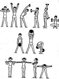 - 10 Тягов гантелей (используйте кувшин для молока или другую гирю).