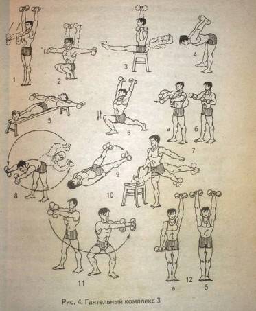 - 10 Тягов гантелей (используйте кувшин для молока или другую гирю).