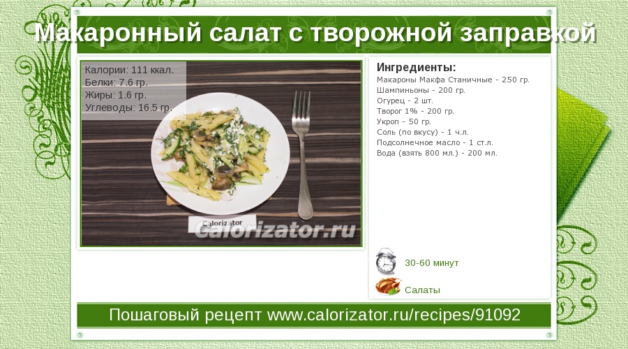 Не забываем, что если к макаронам добавить кетчуп и другие виды соусов, а тем более жирные, то калорийность может возрасти. Причем, в зависимости от блюда, несколько раз. А вот если приготовить к макаронам кабачки, баклажаны или свежие помидоры, получится вкусное и полезное блюдо. Калорийность макарон из твердых сортов пшеницы, сваренных с сыром, составит примерно 333 ккал на 100 г готового блюда.Но здесь многое зависит от сорта сыра и его калорийности. Если сыр нежирный, то макароны из твердых сортов пшеницы с сыром будут более легким блюдом, а если добавить сыр с высокой жирностью, блюдо нельзя назвать диетическим.Как на самом деле выглядят 100 калорий для 25 продуктов