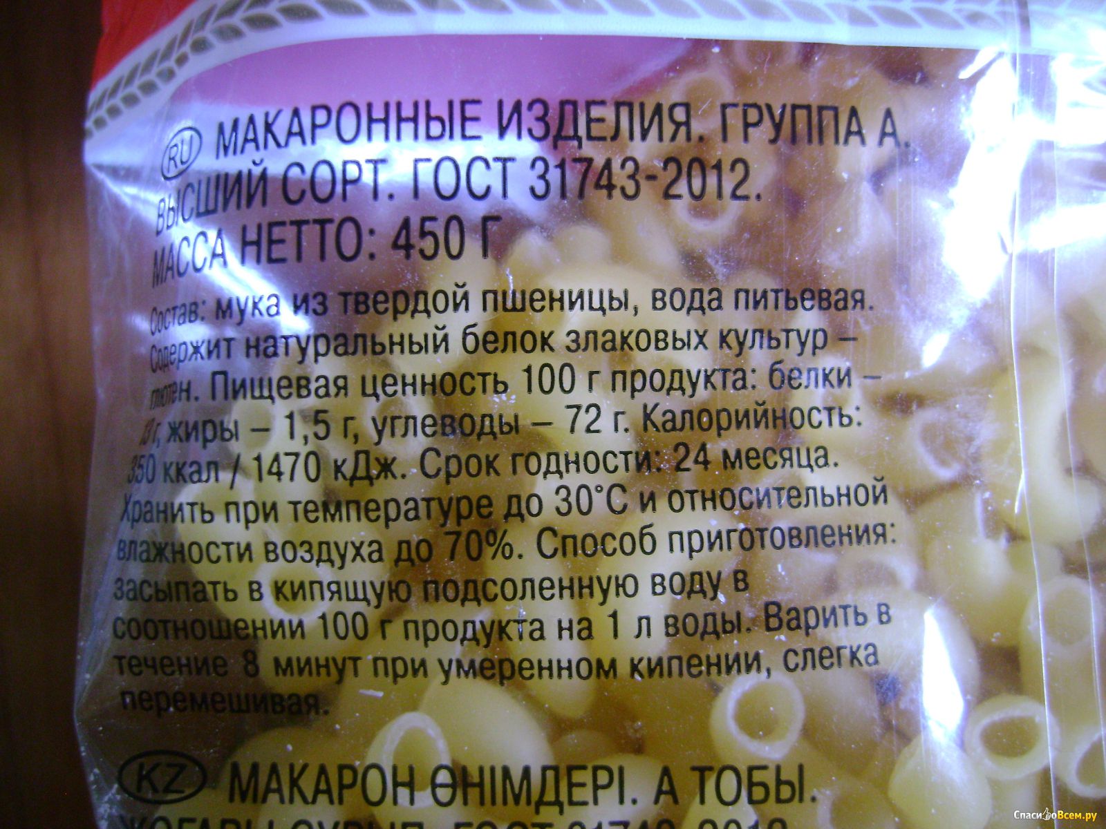 Калорийность макаронных изделий из твердых сортов пшеницы вареных