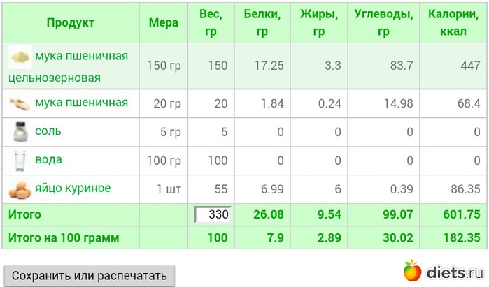 Таблица калорийности продукта (твердые, вареные, с сыром и т.д )