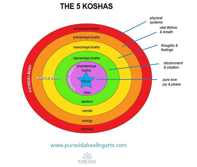Панча майя коши — это пять оболочек человеческого существования согласно ведантической философии и древнему тексту тантрической йоги Тайттирия Упанишад. Вы можете думать о пяти кошах как о слоях луковицы, в центре которой находится Атман, истинное «я». Работая над слоями, мы начинаем с грубого (физического тела), а затем продвигаемся через тонкое тело к себе.