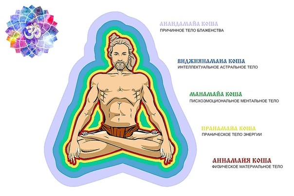 В традиции Йоги принято выделять семь основных уровней или оболочек (Кош) человеческого существа: