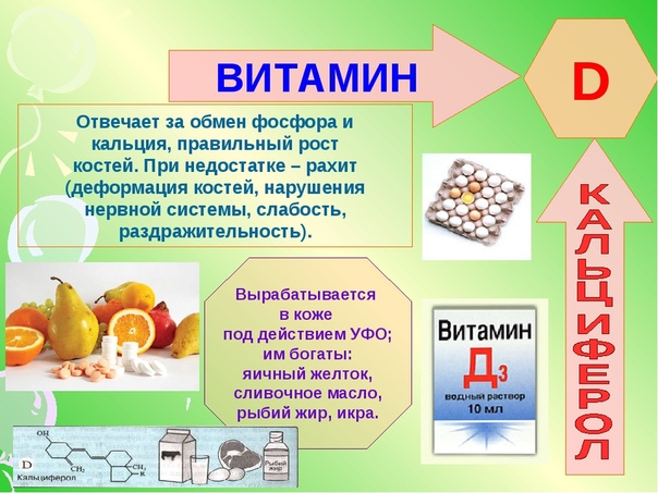 Однако в Северной Америке 98% жидкого и сухого молока (≥400 МЕ/л), а также некоторые виды маргарина, сливочного масла и некоторых злаков обогащены витамином D 2 (облученный эргостерол) или D 3 . , но реальное содержание витамина D часто сильно отличается от стандарта на этикетке.Обезжиренное молоко и даже запатентованная детская смесь часто не имеют заявленного содержания витамина D. 17,18 Витамин D удивительно стабилен и не портится при нагревании или длительном хранении пищи. Второе национальное исследование здоровья и питания (NHANES II) показало среднее потребление около 3 мкг/сутки у взрослых (от 0 до 49 мкг), 19 , тогда как у пожилых женщин было зарегистрировано несколько более низкое среднее потребление (2,3 мкг). 20 Ввиду низкого содержания витамина D в вегетарианской диете (естественное потребление витамина D действительно связано с потреблением животных жиров), дефицит витамина D и рахит являются фактором риска для строго вегетарианских детей с недостаточным пребыванием на солнце или недостаточном количестве витамина D дополнение.