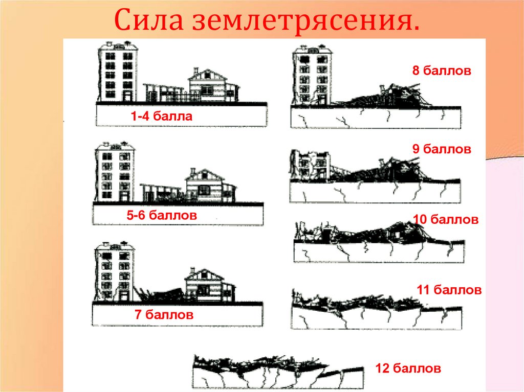 8 баллов — Часть висячих ламп повреждается. Мебель сдвигается и опрокидывается. Легкие предметы подскакивают и опрокидываются. Люди с трудом удерживаются на ногах.