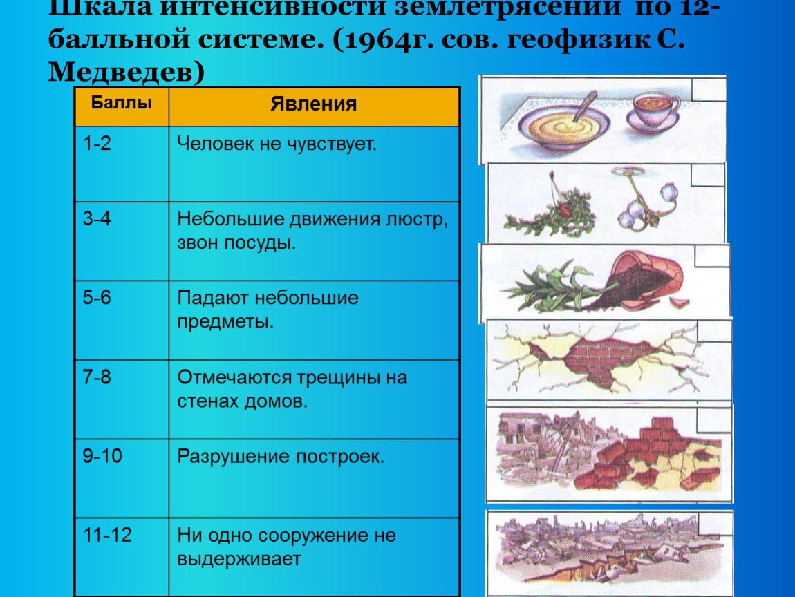 Оценка бальности землетрясения по общим признакам (шкала MSK-64)