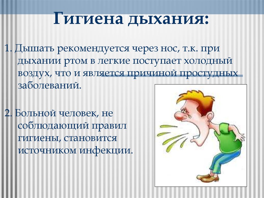 Если дышать ртом, воздух устремится сразу в легкие вместе со всеми вредными организмами, частичками пыли, вирусами и бактериями. Это опасно.
