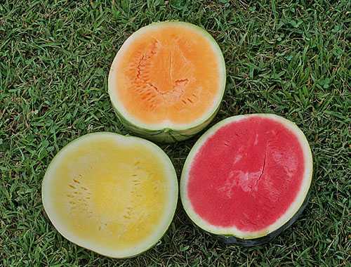 Калифорния Кросс – это американский гибрид, отличающийся очень большими размерами ягод. А вот самым маленьким является арбуз сорта Пепкинос. Вектор имеет мускатный вкус. А Лунный не только поражает желтой мякотью, но и лимонным привкусом.
