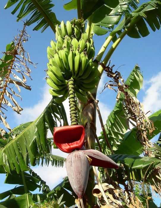 Банановое растение — это трава высотой 5 метров, похожая на пальму.