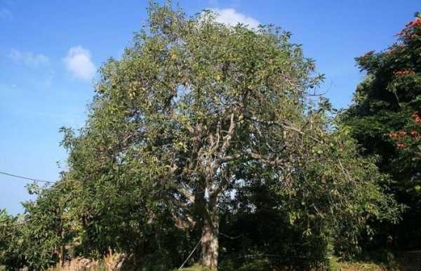 Вечнозелёное манговое дерево имеет высоту 10-45 метров; крона дерева достигает радиуса 10 метров.