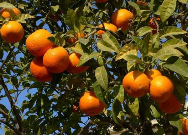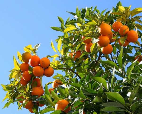 Апельсины растут на апельсиновых деревьях высотой до от 4-6 до 12 метров.