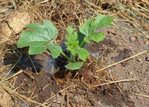 Всходы после посадки арбузов семенами в открытом грунте появляются уже через неделю. А когда на растении вырастает 4 настоящий листик, всходы прореживают, удаляя слабые растения путем их обрезки под корень.