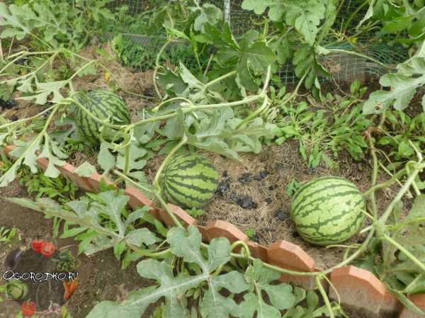 Раз в неделю растения стоит обильно полить водой. А рыхление и прополка осуществляется пока плети арбузов не сомкнут ряды.