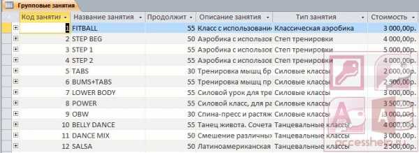Таблица «Групповые занятия» — База данных Access Фитнес-центр
