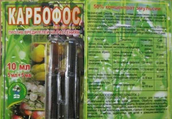 Чтобы надежно защитить культуру от нападения вредителей и возникновения различного рода болезней, каждую весну важно опрыскивать посадки раствором Карбофоса. Он убережет ее от тли, боярышницы, долгоносиков и других насекомых паразитов. Препарат применяют в соответствии с инструкцией от производителя.