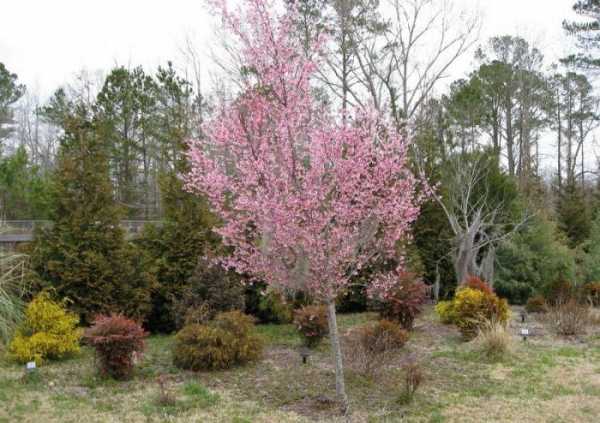 Популярные сорта красной черемухиНаиболее распространенным для выращивания на приусадебных участках считается сорт Шуберта. Эта красная черемуха с глянцевыми листовыми пластинами отличается декоративными свойствами и зачастую высаживается в качестве украшения сада, а не для сбора ягод. Растение достигает высоты 6–10 метров, с возрастом развивает пышную развесистую крону, которая меняет цвет в зависимости от сезона: летом листья зеленые, а к осени приобретают пурпурный или фиолетовый оттенок.