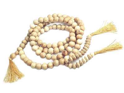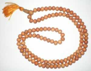 Дерево сандала традиционно считается одной из чистейших субстанций и широко ценится за его охлаждающие и лечебные свойства. Практика на сандаловых четках способствует умиротворению. Сандал действует успокаивающе и охлаждает ум, он успокаивает питта дошу и помогает практикующему преодолеть чувственные соблазны. Он также притягивает позитивные тонкие вибрации, приносит ясность восприятия и может использоваться в практике поклонения любому Божеству.