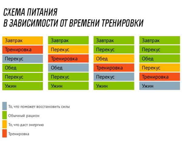 Поэтому следует самостоятельно выбрать подходящий режим питания, при котором тренировки не доводили бы до полного истощения, а последующие приемы пищи не превращались бы в переедание.