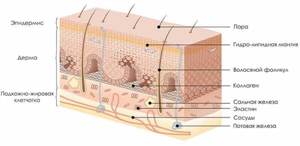 У женщин меньше толщина кожи, но больше толщина жирового подкожного слоя. Напротив, в коже мужчин коллагена содержится больше, чем в женской коже. Эти различия сохраняются в любом возрасте. В период с 6 до 12 лет у детей более чем в три раза возрастает доля подкожного жира, затем у девочек происходит дальнейшее увеличение массы подкожного жира, а у мальчиков этот процесс прекращается.