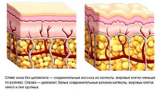 В зависимости от структуры жировой ткани и степени лишнего веса диаметр адипоцитов иногда возрастает почти в 40 раз, что и приводит к образованию бугорков и впадинок между ними.
