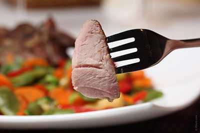 - нежирные сорта мяса. Лучше всего подойдет курица, индейка и кролик, а также телятина и говядина. Жирная баранина и свинина нежелательны к употреблению. Чтобы белок лучше усвоился – мясо надо отварить, запечь в духовке или же приготовить в пароварке. Разрешаются колбасы и сало;
