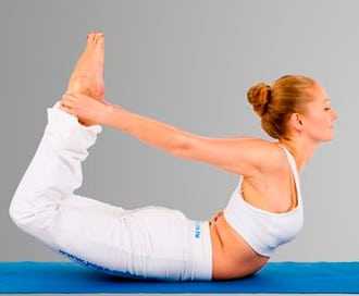 - Корзинка. Ложимся на живот, ноги сгибаем в коленях, руками держим лодыжки. На вдохе отрываем грудь и бедра от пола, фиксируем положение и расслабляемся. Повторяем 10-15 раз.