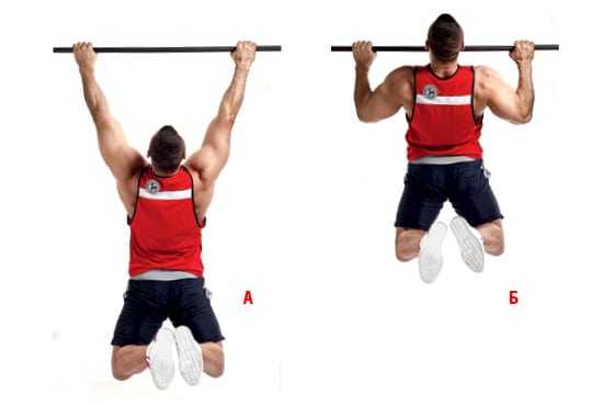 - Подтягивания. Движение выполняют на перекладине. Необходимо ухватиться за турник так, чтобы расстояние между ладонями составляло 25-30 см. усилием рук надо подтянуть тело вверх так, чтобы подбородок был выше перекладины. Минимальное количество повторений 10 раз.