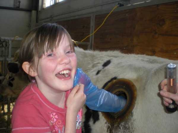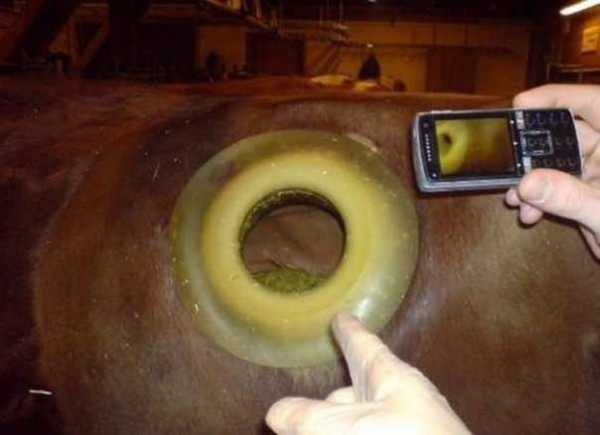 Кроме того, благодаря подобному отверстию теперь можно своевременно контролировать концентрацию бактерий и одноклеточных в желудке коровы, и кормить ее теми кормами, которые буренка способна переварить с максимальной пользой для себя.