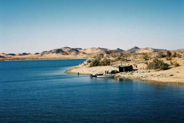 Нил извилисто протекает по пустыне Сахара, затем по Египту. На границе Судана и Египта Нил протекает через рукотворное озеро Насер – крупное искусственное озеро длиной до 550 км.