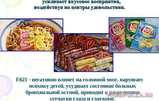 - Часто именно эту пищевую добавку рекомендуют гипертоникам. Потому, что этим пациентам противопоказано употреблять соль, а вот немножко Е621, может сделать блюдо не таким пресным и более вкусным.