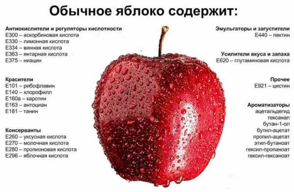 Что же касается его производства, то идут споры о натуральности конечного продукта, ведь если искусственно создан и выделен, то это все равно химия. Но чтобы понять, что все, что нас окружает химия, стоит посмотреть на состав простого яблока.