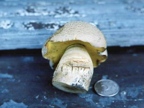 ΠΠΎΠ»ΡΠ±Π΅Π»ΡΠΉ Π³ΡΠΈΠ± ΠΈΠ»ΠΈ ΠΆΠ΅Π»ΡΡΠΉ Π±ΠΎΡΠΎΠ²ΠΈΠΊ Ρ ΠΎΠΏΠΈΡΠ°Π½ΠΈΠ΅ΠΌ