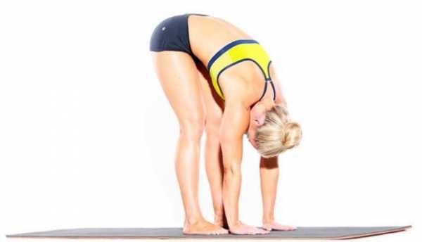Вот как: встаньте прямо, ноги близко друг к другу. Сделайте глубокий вдох. На выдох медленно наклонитесь вперед, поднимая за спиной вверх переплетенные пальцами р прямые руки. Живот лежит на бедрах, ноги в коленях расслабленытела вперед, сложить руки за спину, и пусть руки свалить обратно на фронт. Отдых в желудок на бедрах. Замрите в этой позе, дышите равномерно.