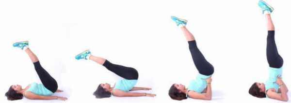 - Выпрямленные нижние конечности поднять вверх вертикально, как показано на фото.