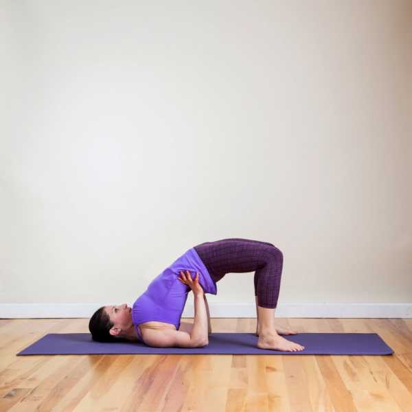 - Поднять таз, помогая ладонями.