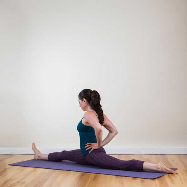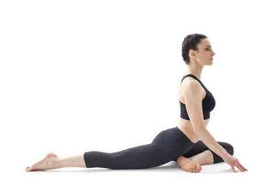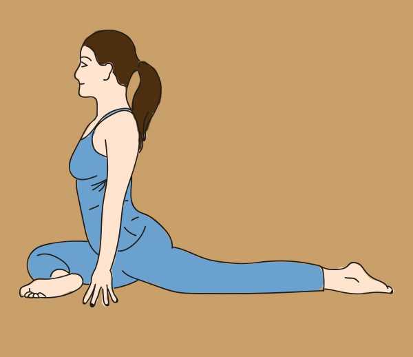 Встань на четвереньки, руки держи на ширине плеч. Перенеси левое колено вперед, поставь его между руками. Правую ногу отведи назад и выпрями. Наклони вперед всё тело, перемещая центр тяжести через левое колено. Задержись в этой позиции на минуту, поменяй ногу.