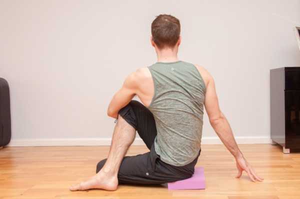 - С каждым выдохом сильнее скручивать позвоночник. Сделать от 3 до 5 дыхательных циклов.