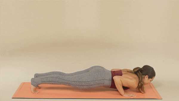 Вот как: На четвереньках, опираясь только на ладони и колени. В запястья – под плечами, колени – под бедрами. Разведите пальцы врозь, шагните одной ногой назад и рядом вытяните вторую. Опора только на ладони и пальцы ног. Тело вытянуто в струнку и представляет собой прямую линию.