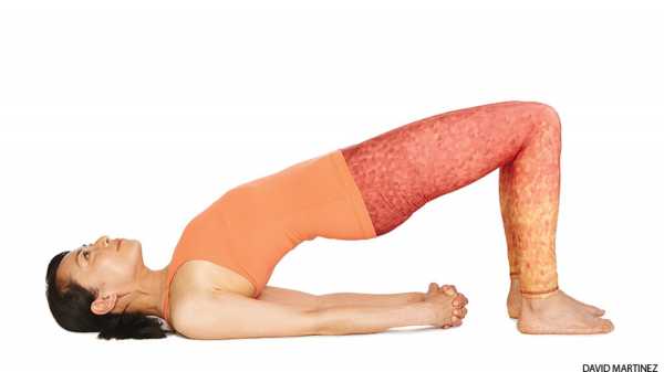 9. Кхандарасана — «Полумостик» («Стойка с опорой на плечи») — тоже поза для релаксации нижней части туловища. Может выполняться предельно долго, «через немогу» (по В. Райху), оздоравливая сексуальную сферу. Активизирует Манипура-чакру.