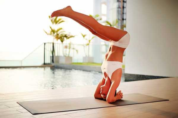 6. Сарвангасана («Стойка на плечах») и Випарита-карани асана («Перевернутая психическая поза»). Облегченная замена Сиршасане — тоже перевернутое положение тела, но без (травмоопасной!) жесткой опоры на макушку. Существуют и еще более безопасные, облегченные вариации этих двух поз, когда используются пропсы (пледы, кирпичи, даже стулья). Бывают и, наоборот, более спортивные и рискованные вариации позы.