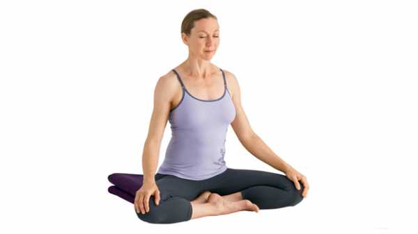 4. Сукхасана — «Удобная» или «Легкая» поза. Хороша именно тем, что ее легко принять. Но для долгого сидения (если не использовать доп. пропсы), совершенно не подходит.