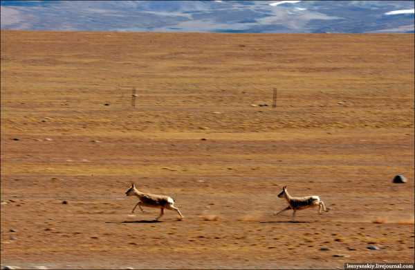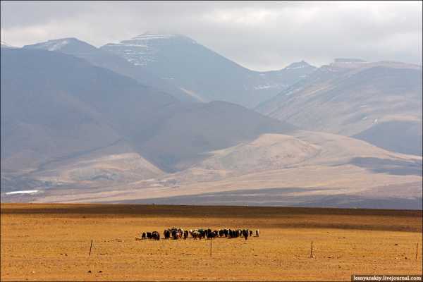 Известно, что тибетские скотоводы ведут кочевой образ жизни. Когда пастбища оскудевают, семьи грузят все свое добро на спины яков и переезжают на новое место. Мы едва не застали на дороге караван кочевников: они только что пересекли трассу, прошли через ворота в проволочных ограждениях и быстро удалялись в сторону гор. Не повезло…