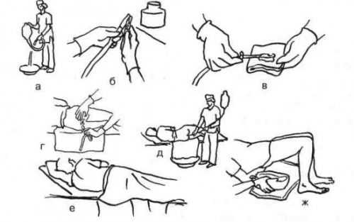 ΠΠ»Ρ ΠΏΠΎΡΡΠ°Π½ΠΎΠ²ΠΊΠΈ ΠΊΠ»ΠΈΠ·ΠΌΡ ΠΏΠ°ΡΠΈΠ΅Π½ΡΡ Π½Π΅ΠΎΠ±Ρ ΠΎΠ΄ΠΈΠΌΠΎ ΠΏΡΠΈΠ½ΡΡΡ Π»Π΅ΠΆΠ°ΡΠ΅Π΅ ΠΏΠΎΠ»ΠΎΠΆΠ΅Π½ΠΈΠ΅ Π½Π° Π»Π΅Π²ΠΎΠΌ Π±ΠΎΠΊΡ ΠΈ ΠΏΠΎΠ΄ΠΎΠ³Π½ΡΡΡ ΠΊΠΎΠ»Π΅Π½ΠΈ ΠΊ Π³ΡΡΠ΄ΠΈ. ΠΠ°ΠΊΠΎΠ½Π΅ΡΠ½ΠΈΠΊ Π³ΡΡΡΠΈ ΠΏΠ΅ΡΠ΅Π΄ Π²Π²ΠΎΠ΄ΠΎΠΌ ΡΠΌΠ°Π·Π°ΡΡ Π²Π°Π·Π΅Π»ΠΈΠ½ΠΎΠΌ ΠΈΠ»ΠΈ Π³ΠΈΠΏΠΎΠ°Π»Π»Π΅ΡΠ³Π΅Π½Π½ΡΠΌ ΠΊΡΠ΅ΠΌΠΎΠΌ ΠΈ Π²Π²Π΅ΡΡΠΈ Π»ΡΠ³ΠΊΠΈΠΌΠΈ ΠΊΡΡΡΡΡΠΈΠΌΠΈΡΡ Π΄Π²ΠΈΠΆΠ΅Π½ΠΈΡΠΌΠΈ.