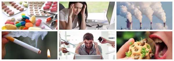 - Грязная экологическая обстановка. Проживание в загрязненном заводами и автомобилями воздухе, работа на грязном производстве – один из главных факторов.