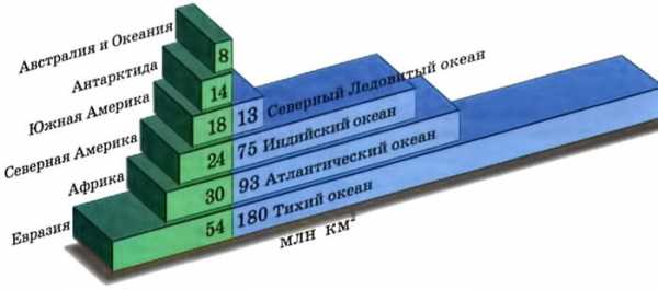 - Площадь вместе со всеми морями — 179,7 миллионов квадратных километров.