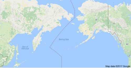 Граница проходит по линии, которая пролегает в Беринговом проливе, начиная от мыса Дежнева и заканчивая мысом Принца Уэльского.